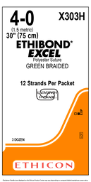 Suture without Needle Ethibond Excel™ SUTUPAK™ Braided Polyester Nonabsorbable Coated Size 4 - 0 30 Inch Suture SUTURE, ETHIBOND GRN BR 4-0 3 0" (36/BX)